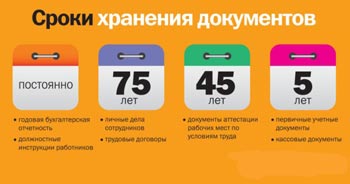 Храните бумаги в течение срока, установленного законодательством, но не менее пяти лет Хотя Минфин назвал минимальные сроки хранения первички. Но ведомости для расчета налогов можно выбросить через пять лет. После того, как вы сдали декларацию. Первичку храните на год дольше. Вы вправе избавиться от бумаг, которые использовали для расчета и уплаты налога на прибыль, НДС и т.д., если они старше пяти лет. Период хранения первичных документов установлены в Налоговом кодексе РФ, Законе от 6 декабря 2011 № 402-ФЗ. А также в перечне, утвержденном приказом Федерального Архивного Агентства от 20 декабря 2019 г. N 236 (бывший Приказ 558). В статье 23 Налогового кодекса РФ говорится, что бумаги, необходимые для целей расчета налогов. (в том числе бухгалтерские), организация должна хранить в течение пяти лет. (подпункт 8 п. 1 ст. 23 НК РФ). Это требование относится ко всем бумагам бухгалтерского и налогового учета. Необходимым для исчисления и уплаты налогов, в том числе и к бумагам электронных систем документооборота между банком и клиентами. (В частности, системы «Клиент-Банк»). Соблюдать указанный срок организация обязана, если другие сроки не установлены законодательством. Аналогичные выводы подтверждаются письмом Минфина России от 30 марта 2012 № 03-11-11/104. Вместе с тем, в части 1 статьи 29 Закона от 6 декабря 2011 № 402-ФЗ сказано. Что первичные учетные ведомости, регистры бухучета, бухгалтерскую отчетность. А также аудиторские заключения о ней нужно хранить в течение того периода, который установлен правилами архивного дела. Но не менее пяти лет. Сроки же хранения типовых архивных бумаг определены в перечне, утвержденном приказом Минкультуры России от 20 декабря 2019 г. N 236. Чтобы не быть наказанными за нарушение правил, установленных Законом от 6 декабря 2011 № 402-ФЗ. Храните налоговые декларации, расчеты, регистры и другие бумаги минимум пять лет. Дольше – лишь те, для которых законодательством установлен больший срок. Упакованные в опечатанные мешки копии использованных бланков строгой отчетности (корешков). Подтверждающих суммы принятых наличных денежных средств, храните не менее пяти лет. После того как закончится этот срок и пройдет хотя бы один месяц со дня последней инвентаризации. Копии использованных бланков можно уничтожить на основании акта об их списании. Такие правила сроков хранения документов организации установлены в пункте 19 Положения, утвержденного постановлением Правительства РФ от 6 мая 2008 № 359. КАДРОВАЯ документацияСроки, в течение которых хранят документацию по личному составу, указаны в статье 22.1 Закона от 22 октября 2004 г. № 125-ФЗ. И перечне, утвержденном приказом Минкультуры России от 20 декабря 2019 г. N 236. Началом хранения считается 1 января года, следующего за годом, в котором их составили. (Абзац 4 п. 1.4 перечня, утвержденного приказом Минкультуры России от 20 декабря 2019 г. N 236). Приказы о приеме на работу, переводе, увольнении и другие приказы по личному составу в общем случае нужно хранить не менее 75 лет. Если они созданы до 2003 года. Если указанные бумаги созданы после 2003 года, то их нужно хранить не менее 50 лет. Трудовые договоры, личные карточки и личные дела сотрудников также нужно хранить в течение 75 лет. Если они созданы до 2003 года. Или в течение 50 лет, если они созданы после 2003 года. Любые документы по личному составу, которые образовались в пер