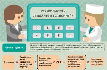 Модератор Доброе утро! Если Вы желаете быстро сделать расчет отпускных в соответствии со всеми утвержденными правилами? Воспользуйтесь бесплатным онлайн калькулятором отпускных от сервиса Контур.Бухгалтерия.После ввода необходимых данных калькулятор рассчитает автоматически сумму к выплате сотруднику, уходящему в отпуск. Расчет на онлайн быстрый калькулятор отпускных выполняется по среднему заработку за 12 предыдущих месяцев. Если в этот период в вашей организации было массовое повышение зарплаты. Укажите это и заработок сотрудника за месяцы до повышения проиндексируется. Чтобы расчет выполнился по текущему заработку и сотрудник не потерял в деньгах. Также при заполнении полей можно увидеть подсказки со ссылками на статьи нормативных документов к отпускному периоду. Итак, калькуляторы отпускных помогают быстро и точно сделать расчет. | |