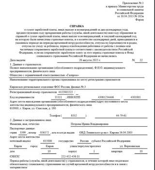 Справка о зарплате, иных выплат, доходах и вознаграждений за 2 календарных года. Её выдают сотруднику при увольнении. С печатью организации для расчета на больничный лист и для других пособий. Это т.н. справка для больничного. Для расчета больничного листа по временной нетрудоспособности с предыдущего места работы по форме 182 н. Запросить ее может и бывший сотрудник при увольнении. На основе этой справки человеку рассчитают пособия по временной нетрудоспособности (больничный). По беременности и родам (декретный) и по уходу за ребенком на новом месте работы. Справка о средней заработной плате для определения размера пособия выдается за два календарных года. Которые предшествовали году прекращения работы. Или году обращения за справкой, и текущий календарный год. Её бланк 182н можно здесь скачать. Их называют еще "больничные справки". Такие правила установлены пунктом 3 части 2 статьи 4.1 Закона от 29 декабря 2006 г. № 255-ФЗ. Пунктами 2–4 Порядка, утвержденного приказом Минтруда России от 30 апреля 2013 г. № 182н. Выдача Справки для пособий о заработке за два года для пособий. Это больничный, декретный, по уходу за ребенком. Она осуществляется в день прекращения работы (службы, иной деятельности) у страхователя. За период, когда заявитель был застрахован. Т.е. за время выполнения работы лицо подлежало обязательному социальному страхованию на случай временной нетрудоспособности и в связи с материнством. Бывают случаи, когда невозможно вручить Справку непосредственно в день прекращения работы. Службы, или иной деятельности. В этом случае страхователь направляет застрахованному лицу по адресу его места жительства. Которое известно страхователю. Посылается уведомление о необходимости явиться за Справкой. Либо о даче согласия на отправление ее по почте. В случае согласия застрахованного лица. На отправление Справки по почте указанное лицо уведомляет об этом страхователя в письменном виде. После прекращения работы (службы, иной деятельности) Справка выдается по письменному заявлению застрахованного лица. Или его законному представителю либо доверенного лица. Срок выдачи - не позднее трех рабочих дней со дня получения (регистрации) страхователем заявления. Заявление может подаваться застрахованным лицом лично. Либо через его законного представителя (доверенное лицо). Или направляться по почте. При обращении с заявлением доверенного лица представляются документы, удостоверяющие его личность и полномочия. Справка для пособий о заработке за два года для пособий (больничный, декретный, по уходу ха ребенком) заполняется от руки. Черными или синими чернилами (шариковой ручкой). Или с использованием технических средств (компьютера или пишущей машинки). Подчистки и исправления не допускаются. Сведения, содержащиеся в Справке, заполняются на основании данных бухгалтерского учета и отчетности страхователя. Заполненная Справка удостоверяется печатью организации (круглой). Подпись не должна закрываться печатью. Печать проставляется в отведенном месте ("Место печати страхователя"). В нижнем левом углу Справки о заработке за два года для пособий (больничный, декретный, по уходу ха ребенком). к меню ↑ Пример заполнения СПРАВКИ о ЗАРПЛАТЕ за 2 годаСмотреть ПРИМЕР в формате .PDF ✅ 1. Скачать пример СПРАВКИ о ЗАРПЛАТЕ за 2 года в формате Word. 2. Пустой бланк но